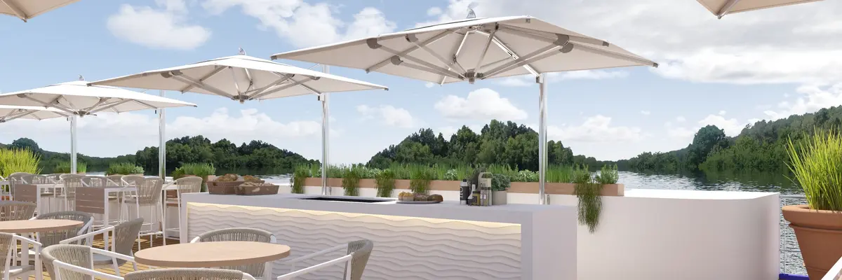 Enjoy relaxing moments in 12 spacious suites with balconies or 67 bright outside cabins featuring panoramic windows. Savor culinary highlights in the elegant Panorama Restaurant or unwind on the sun deck with its outdoor pool and Lido Bar. For active moments, a state-of-the-art fitness room is at your disposal, while the “River Terrace” invites you to dream. Cutting-edge environmental technologies, such as a hybrid propulsion system and an efficient heat recovery system, make your journey not only comfortable but also sustainable. Set sail with us and experience unforgettable journeys along Europe’s most beautiful rivers.