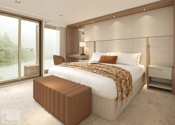 These staterooms feature the AMADEUS Signature Bed (available as a double or twin), a drop-down panoramic window for uninterrupted river views, a spacious bathroom with a walk-in shower and premium Rituals® bathing products, walk-in wardrobe, flat-screen TV, individual climate control, well-stocked minibar, in-room safe, bathrobe and slippers, hair dryer, and direct dial telephone — ensuring a comfortable and refined travel experience.
