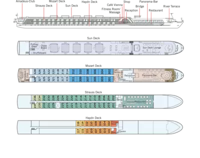 Designed with both style and practicality in mind, our Haydn Deck cabins offer a peaceful and well-equipped space for your journey.
