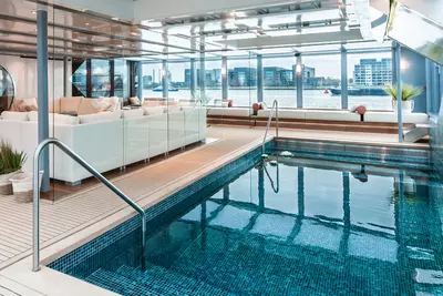 Each cabin features a spacious bathroom with a walk-in shower, luxurious Rituals bath products, and a hair dryer, along with a fixed panoramic window that fills the space with natural light. Thoughtful touches like a comfortable double or twin bed, generously-sized wardrobe, secure in-room safe, flat-screen TV, individual climate control, well-stocked minibar and direct dial telephone ensure a restful and well-equipped stay.