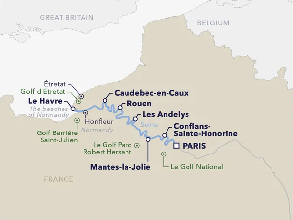 Arrive in Conflans, at the confluence of the Oise and the Seine Rivers. In the morning, you are transferred to the famous Le Golf National Club, which is situated southwest of Paris in Saint-Quentin-en-Yvelines, near the Palace of Versailles. At this legendary golf club you will be able to play the Aigle course, which is maintained at the same impeccable levels as its sister course, the Albatros. A delicious dinner awaits you back on board while your ship continues its journey down the Seine.