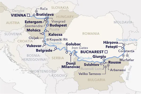 Stroll along Vienna’s grand boulevards, explore the historic heart of Budapest, wander through Bratislava’s charming streets, and immerse yourself in the energy of Belgrade. Be awed by the dramatic Iron Gates Gorge in the Carpathians, a natural spectacle of power and beauty. In the UNESCO-listed Danube Delta, embark on a boat excursion through a unique ecosystem, encountering rare wildlife and lush flora up close. Your adventure culminates with a scenic land transfer to Bucharest, leaving you with memories to treasure—and perhaps a spark for your next journey with us.