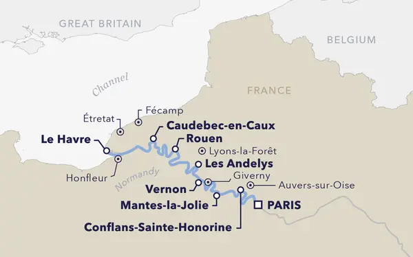 In the early morning hours, you once again arrive in the French capital, and this day is entirely dedicated to Paris. In the morning, you have the opportunity to join a comprehensive city tour introducing you to the city’s most famous landmarks. Admire the venerable Notre-Dame Cathedral, majestically set on the Île de la Cité, experience the iconic Eiffel Tower as a symbol of modern engineering, and drive along the elegant Champs-Élysées, lined with stylish shops, cafés and historic buildings. The afternoon is devoted to the Parisian way of life. An excursion to the renowned artists’ quarter of Montmartre transports you to another era, where narrow streets, small ateliers and charming cafés evoke the vibrant history of the Bohemian movement. Use the remaining time for an individual stroll or enjoy a café au lait in one of the traditional bistros before reflecting on the impressions of this memorable day back on board in the evening.